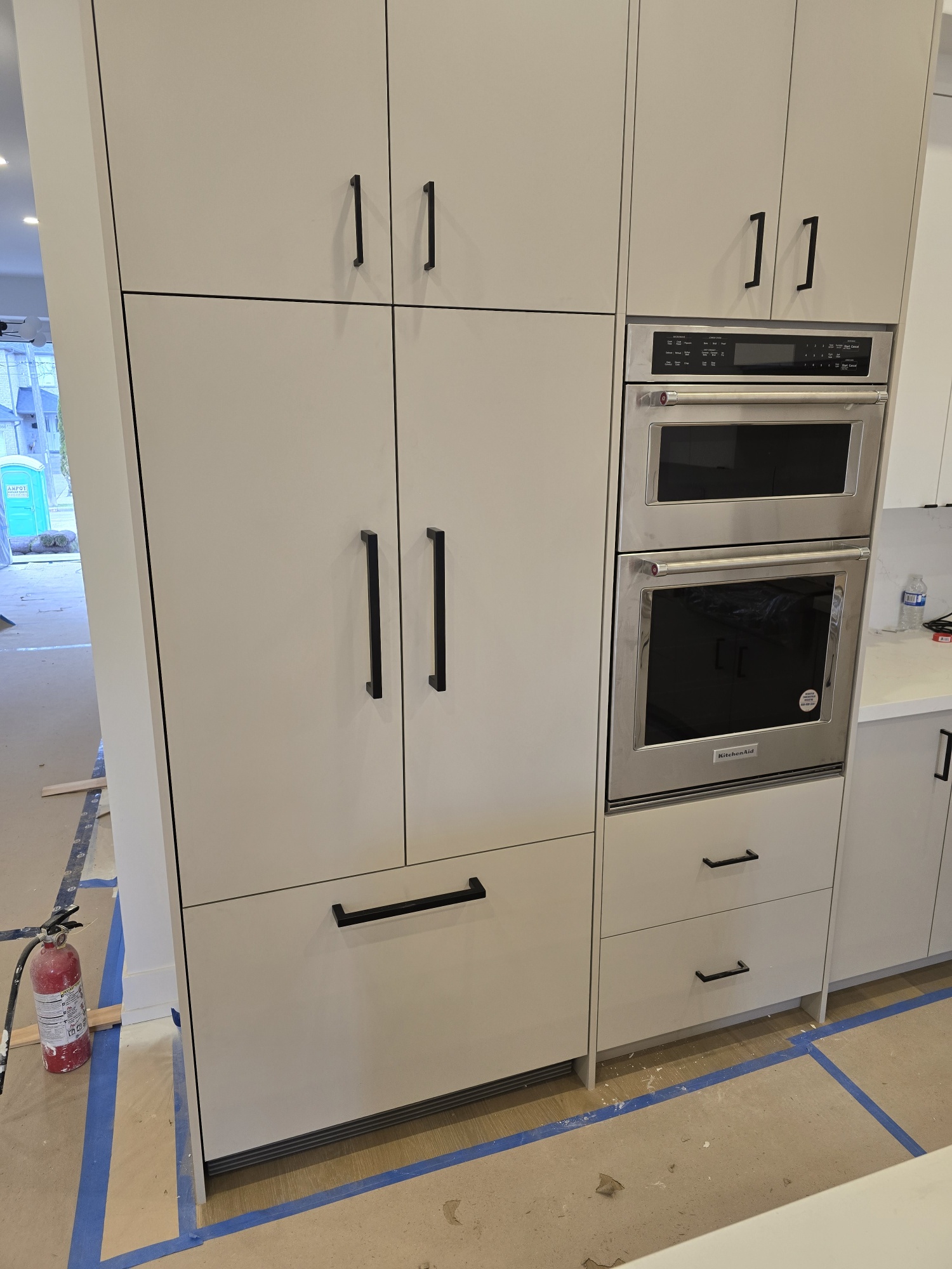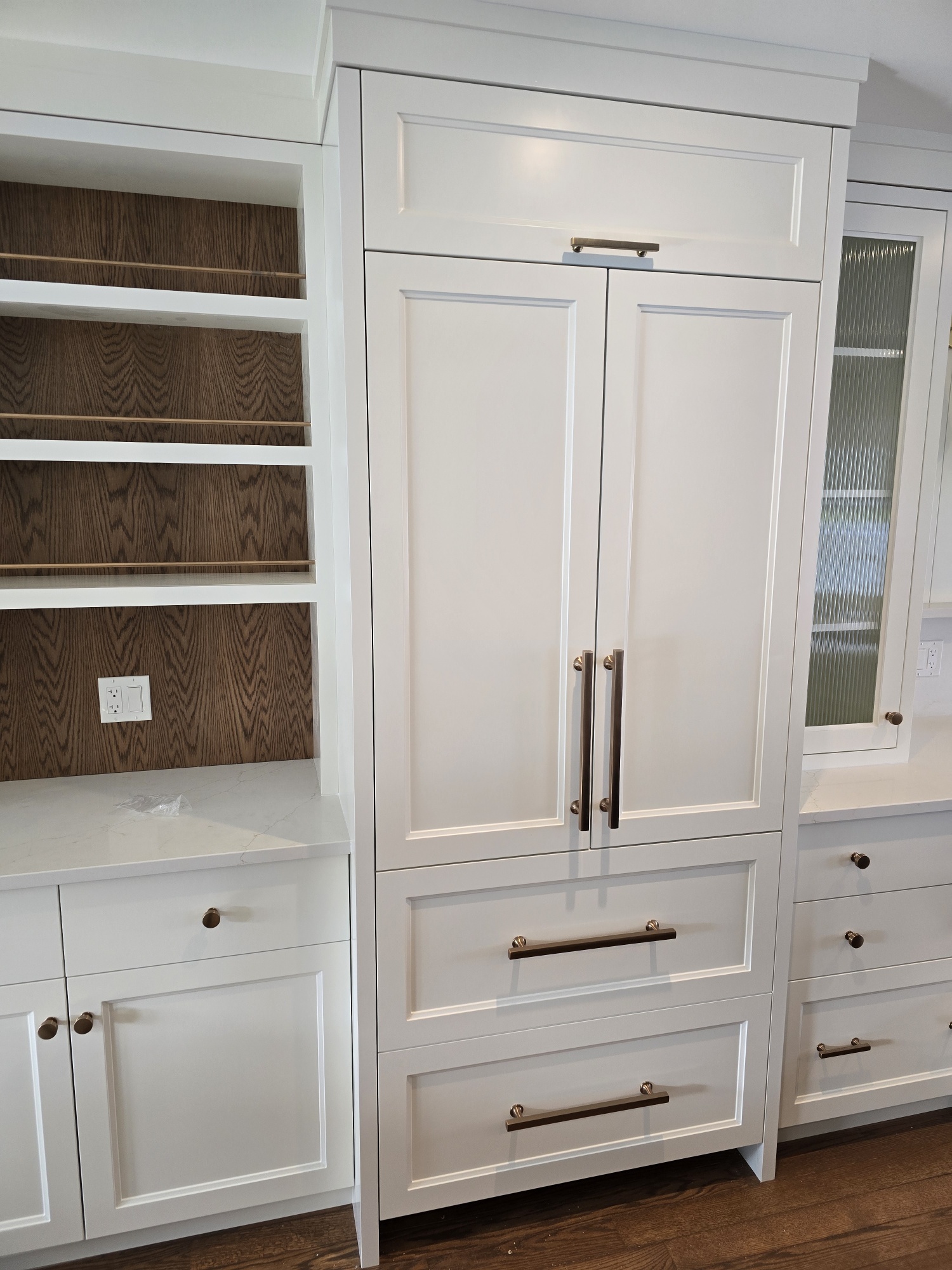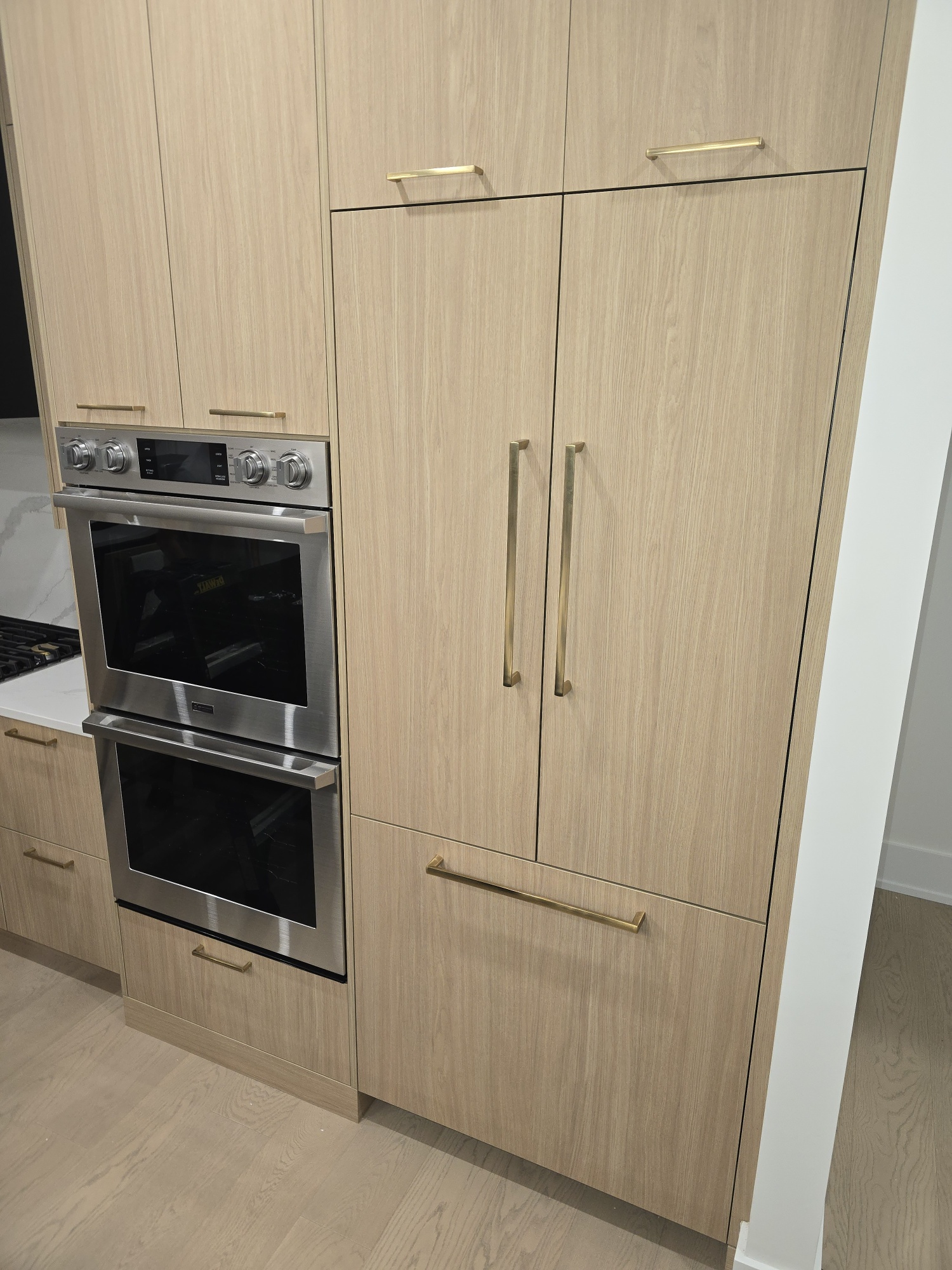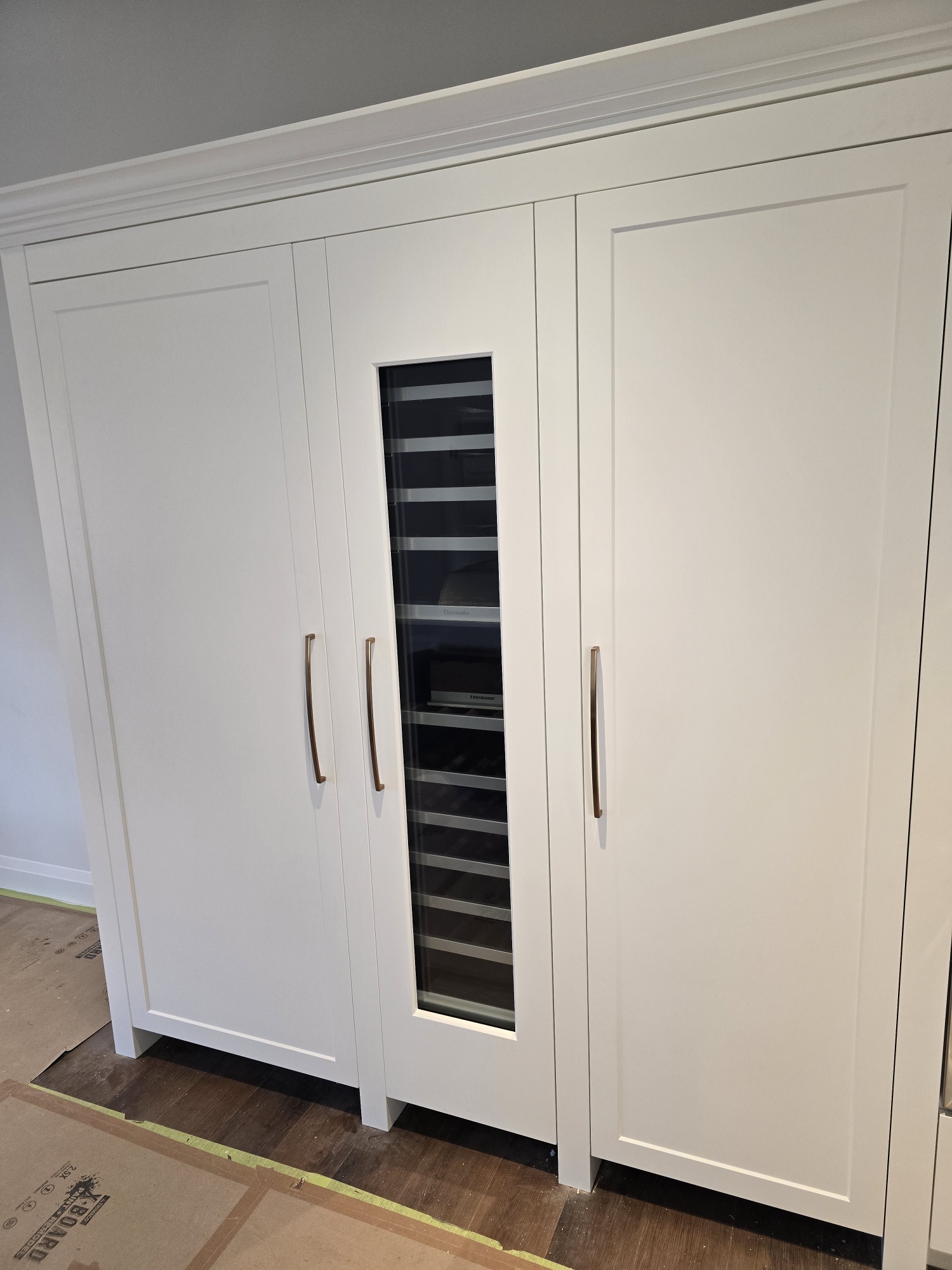 Thermador Integrated Fridge/Freezer/Wine Cooler W/ Custom Wood Panels