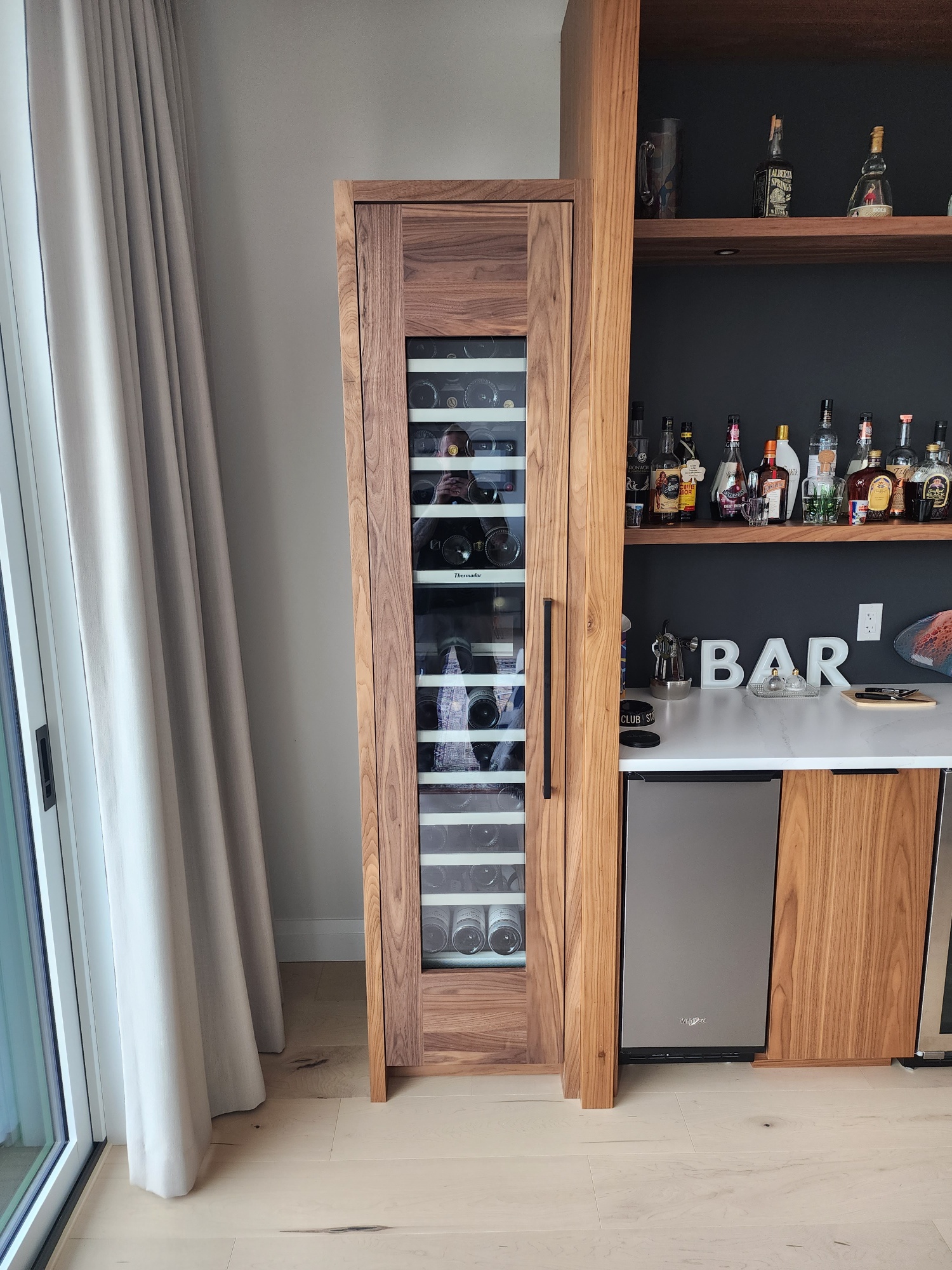 Thermador Integrated Fridge/Freezer/Wine Cooler W/ Custom Wood Panels